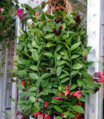 口红花花冠筒状,鲜艳美丽,适于盆栽悬挂,为观叶、观花的优良品种。