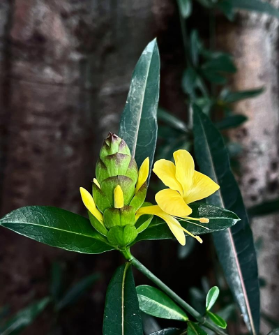 金苞花(学名:Pachystachys lutea Nees)是爵床科金苞花属植物。常绿灌木,高达1米,多分枝。叶对生,狭卵形,长达12厘米,亮绿色,叶面皱褶有光泽。穗状花序顶生,长达10-15厘米,直立,金黄色苞片可保持2-3个月。原产于