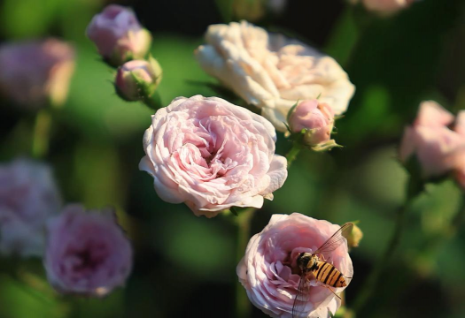蔷薇系阳性花卉,它喜温暖,华北地区及其以南,皆可在室外安全越冬。蔷薇夏季要适当遮荫,避开阳光曝晒;要松土透气,保持通风流畅;要叶面喷水增加空气湿度。
