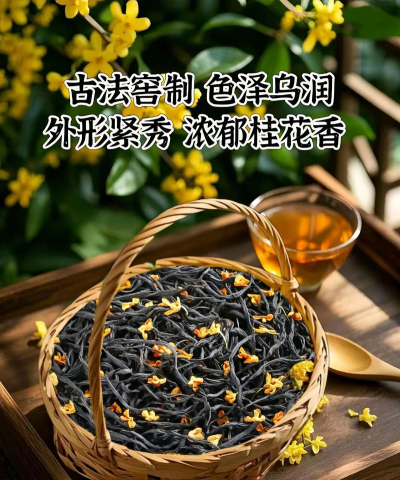 桂花茶是由精制茶坯与鲜桂花窨制而成的一种名贵花茶,香味馥郁持久,茶色绿而明亮,深受消费者宠爱。