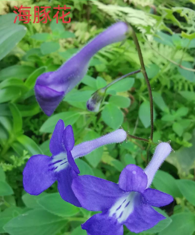海豚花(Streptocarpus saxorum Engl.)是苦苣苔科、海角苣苔属多年生草本植物,株高可达45厘米。单叶对生,肉质,叶片卵圆形或长椭圆形,先端尖,基部楔形,边缘具锯齿,绿色;花梗腋生,冠苘细长,花蓝色、淡蓝色、白色。花期秋至早春。