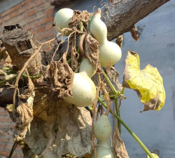 6、10月份,葫芦长成近似白色,表皮毛已经没有,可采收。