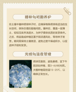 种植绣球花种子需要综合考虑播种方法、环境控制及后期养护,以下是具体步骤和注意事项,结合多个可靠来源的信息整理而成: