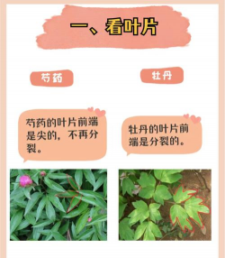 茎部不同:芍药属于草本植物,茎部是草质的;牡丹是一种木本植物,茎部是木质的。叶子区别:芍药的叶子是比较窄的,叶端部分比较长,叶子背面有时会有毛;牡丹的叶子是相对较宽,背面没有毛。花朵区别:芍药的花朵偏小一些,直径大约15厘米左右;牡丹花型要大一些,直径大约20厘米