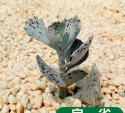 多年生多肉植物,对叶,扇形的银灰色的叶片上有褐色斑纹,类似麻雀的斑纹,叶缘有不规则的波状齿,长约10厘米,蓝灰至灰绿色,被有一层薄薄的白粉,常作观叶植物栽培。