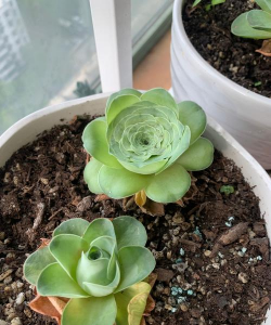 这种宛若玫瑰花苞的整体植株状态只出现在夏季的休眠季,休眠时期,植株整体底层叶片枯萎,根系颜色变深,如同枯木。其他三季里,它的叶片和其他莲花掌属植物一样,呈莲座状正常打开。注意观察就会发现,山地玫瑰在休眠时所有叶片卷向中心所团成的花骨朵,和很多莲花掌属植物在夏季时的叶心样貌是很相似的。另外提醒一下,实际种植中请尽量别在叶子中心积水,否则很容易烂心,尤其是在室内通风情况不好的环境里。如果不慎在叶心积了水,用棉签吸干后最好再尽量多通风。