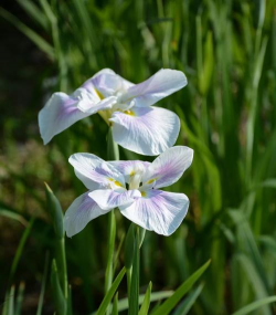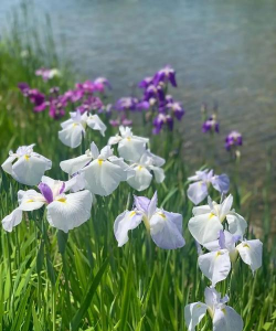 花菖蒲在湿地公园的配置中,常成片群植,在碧波荡漾中,彩蝶飞舞,风景格外秀丽。在河岸浅谈与黄菖蒲、路易斯安娜鸢尾,可使花期前后相续2个月左右,花菖蒲叶片比较柔弱,在庭院水池岸边,水塘石隙点缀数丛,绿叶衬托的花冠,更显得婀娜多姿。