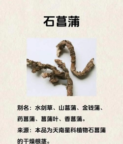 石菖蒲,天南星目天南星科菖蒲属植物。石菖蒲在印度、泰国、越南等地都有分布,在中国主要分于长江以南地区。石菖蒲喜阴凉潮湿的环境,无法耐受阳光暴晒和干旱缺水的环境,因此多生长于山涧水石的空隙中或流水砾石之间,其香气浓郁,根茎多匍匐状横生长。石菖蒲根多呈扁圆柱形,弯曲且有分枝,直径为5毫米~11毫米,呈棕褐色,表面有褶皱。石菖蒲的叶片为狭长条形,无叶柄,呈深绿色,革质,表面有光泽。石菖蒲生肉穗花序,花苞为叶状佛焰苞,花为两性,呈黄绿色,其浆果呈倒卵形,为黄绿色或淡黄色。