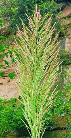 芦竹,拉丁文名:Arundo donax.禾本科、芦竹属多年生,具发达根状茎。秆粗大直立,坚韧,具多数节,常生分枝。叶鞘长于节间,无毛或颈部具长柔毛;叶舌截平,先端具短纤毛;叶片扁平,上面与边缘微粗糙,基部白色,抱茎。圆锥花序极大型,分枝稠密,斜升;背面中部以下密生长柔毛,两侧上部具短柔毛,颖果细小黑色。花果期9-12月。