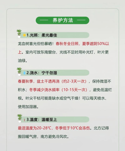 位置:龙血树的室内栽培应置于距南窗台3-4米处,或明亮的地方,过于荫蔽的地方会导致叶片褪色变黄。