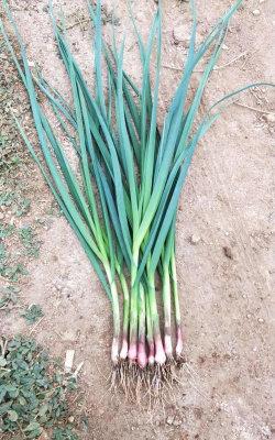 6.采收:一播后50天左右即可陆续分批采收鲜嫩蒜苗上市,为延长供应期,增加产量,应采用隔株采收分批上市。