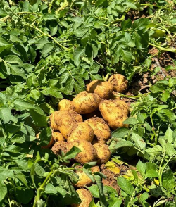 达到生理成熟时收获,早熟品种8月中下旬,中晚熟品种月上中旬收获。收获前一周左右,将马铃薯田机械割秧或化学灭秧,并将茎叶清理出地块。起收时挖掘深度要合理,防止丢薯和破皮伤薯。装运时应轻拿轻放,运输和贮藏时防止日晒、雨淋和冻害。