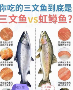 虹鳟鱼和三文鱼的品种不同。虹鳟鱼又叫瀑布鱼、七色鱼,属于淡水鱼品种,生长在低温的淡水区域,对水质要求较高,而三文鱼又叫大马哈鱼、鲜鱼,生长在大西洋、太平洋等海域中。