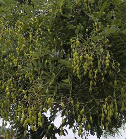 槐(Styphnolobium japonicum(L.)Schott),豆科槐属的落叶乔木。树皮暗灰色,树冠球形,老时则呈扁球形或倒卵形。枝叶密生,羽状复叶。圆锥花序顶生,花蝶形,夏季开黄白色花,略具芳香。荚果肉质,念珠状不开裂,黄绿色,常悬垂树梢,经冬不落,内含种子。种子肾形,棕黑色。