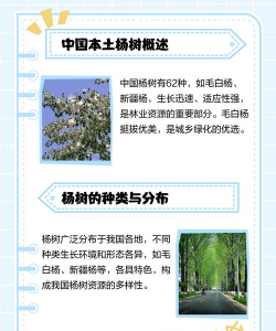 杨树(Populus)分类系统又共分为五大派:青杨派(Tacamahaca)、白杨派(Leuce)、黑杨派(Aigeiros)、胡杨派(Turanga)、大叶杨派(Leucoides)。树干通常端直;树皮光滑或纵裂,常为灰白色。主要分布于华中、华北、西北、东北等广阔地区。