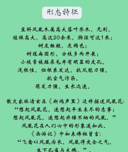 凤凰木(Delonix regia(Boj.)Raf.),豆科凤凰木属高大落叶乔木,植株高大;树皮粗糙,灰褐色;树冠扁圆形,分枝多而开展;二回羽状复叶,羽片对生,小叶两面被绢毛;花为伞房状总状花序顶生或腋生,花大而美丽,为鲜红至橙红色;荚果扁平带形,成熟时黑褐色;种子横长圆形,平滑坚硬,黄色染有褐斑;花期5~7月,果期8~10月。《植物名实图考》记载,该树种16世纪引种澳门凤凰山,故名凤凰木。