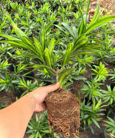 百合竹(Dracaena reflexa)为天门冬科、龙血树属多年生常绿灌木或小乔木,直立上部有分枝,节间短。叶松散成簇生长,叶片线形或披针形,顶端渐尖,全缘,叶色碧绿而有光泽;花为白色、较小,但花序比较长,能达半米;浆果近球形,具1-3颗种子。
