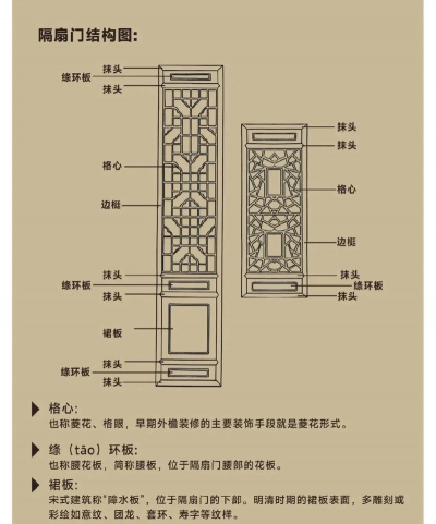 由三根棂条交叉形成六瓣菱花,象征天地之交,多见于高等级宫殿建筑。