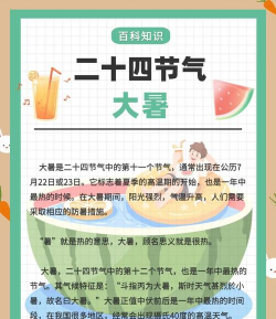大暑的含义是酷热,表示到了一年中最热的时节。大暑是二十四节气中的第十二个节气,所以有一部分地区也叫大暑为半年节,大暑也是反映夏季炎热程度的节令,而大暑表示天气炎热至极。