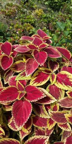 彩叶草是多年生草本植物,观叶类花卉。常用于花坛、会场、剧院布置图案,也可作为花篮、花束的配叶。繁殖方法为播种和扦插,喜温耐寒适应性强,注意病虫害防治。常木质化,分枝少。叶对生,卵圆形,叶面彩色,因品种不同有黄、红、紫、橙、绿等各色斑纹。花期夏秋季,圆锥花序,花小,淡蓝或带白色。彩叶草的叶子色彩非常丰富多彩,是受欢迎的室内和花园植物。红虹彩叶草是彩叶草的一个品种。