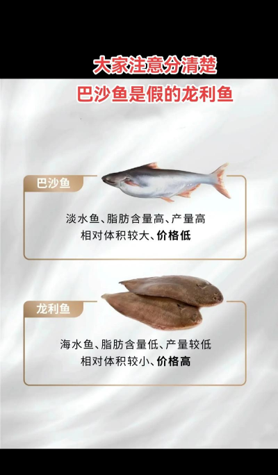 巴沙鱼和龙利鱼的品种不同,其中巴沙鱼是属于鲶形目鲶科的淡水鱼,主要生活在湄公河流域中,具有极高的经济价值,而龙利鱼是属于鲽形目舌鳎科的海水鱼,其别名为子板鱼,是近海大型底层鱼类。