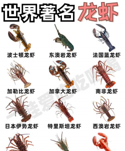 龙虾,原产地在中、南美洲和墨西哥东北部地区,现分布于世界各大洲,品种繁多,一般栖息于温暖海洋的近海海底或岸边。中国产的龙虾至少在8种以上。主要的有:中国龙虾,呈橄榄色,产于广东沿海一带,体形较大,产量也较大;波纹龙虾,色形均似中国龙虾,产于南海近岸区;密毛龙虾,色形均同上两种,产于海南岛和西沙群岛;锦绣龙虾,有美丽五彩花纹,最大可达4~5公斤,产于浙江舟山群岛一带,产量不大。此外,还有日本龙虾、杂色龙虾、少刺龙虾、长足龙虾等,但产量都很少。美洲螯龙虾(Homarus americanus)和挪威龙虾(Nephrops norvegicus)常常以活龙虾的形式市售;可食部分为多肌肉的腹部和螯。真龙虾见于除极地外的所有海洋和较深的水域。欧洲龙虾(Homarus gammarus,即欧洲螯龙虾)呈绿色,见于欧洲大西洋沿岸和地中海岩石质的海底。好望角螯龙虾(Homarus capensis)见于南非周遭海域,体长可达10~13厘米,几无商业价值。