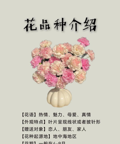 香石竹:在中国传统文化中象征母爱、纯洁与高雅,常用于表达对亲友的祝福;希腊神话中则与爱神相关,花语为“爱情的甜蜜”。