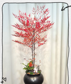 色彩搭配:浅色系花盆(如米白、浅灰)能衬托南天竹的红叶红果,增强视觉对比。