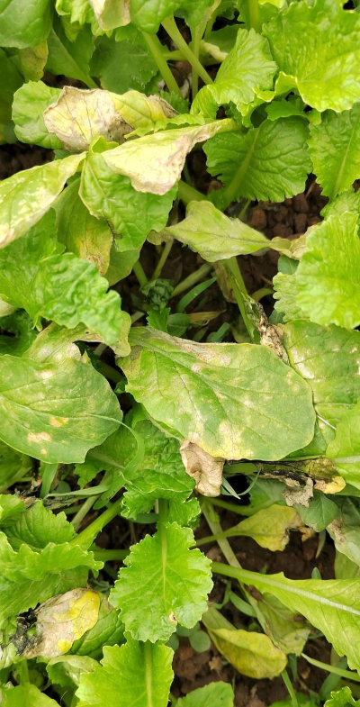 大白菜苗期可能会感染软腐病,发病后叶柄和鳞茎出现黏性软腐斑,导致植株枯萎,平时要加强田间管理雨季及时排出积水,病害严重时,间隔7-9天为大白菜喷洒一次70%的敌克松药剂。