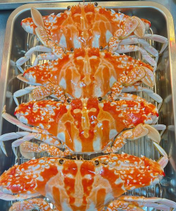 特征:背甲宽厚,腹部洁白,肉质饱满且紧实,味道极鲜甜。雌性蟹壳颜色更深,纹理更明显。