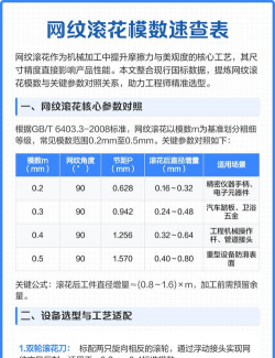 滚花参数涉及多个关键要素,包括花纹类型、模数(或节距)、材质选择、加工工艺及设备参数等。以下是综合整理的核心参数及注意事项: