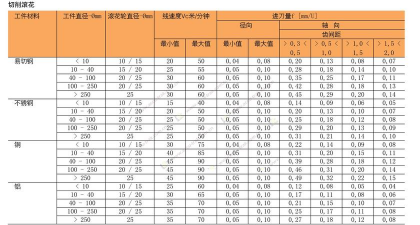 转速与进给量: