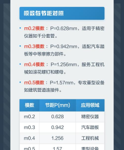 国标(GB/T 6403.3-2008):以模数(m)表示,常用模数为0.2、0.3、0.4、0.5 mm,对应的节距P=πm(如m=0.3时,P≈0.942 mm)。