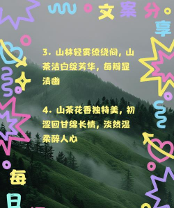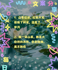 山茶花"山茶花的叶子青绿锯齿,衬托得花朵更加娇艳。花瓣层层叠叠,坚硬而有弹性,花苞如朝天的铃铛,清晨的露珠缀在花瓣边缘,阳光下更显妩媚。""有的含羞待放,小巧的花苞鲜嫩可爱;有的全然盛开,如婴儿清纯的笑脸,向游客展现迷人身姿。"