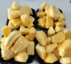果实呈不规则的球形,类似于球形的畸形,重量从5-10斤不等,树体粗大养分充足的情况下果实还会有更加大的。肉质黄色呈柔软的稀烂状态,故大部分地方的人还叫做“烂包菠萝蜜”,香味浓烈,甜度很高。