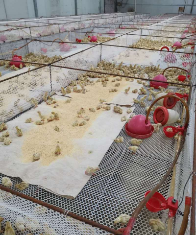 温度控制:1~3日龄保持38~39℃,之后每周降温1~2℃,至3周后降至25℃左右。育雏室需提前消毒,采用福尔马林熏蒸。