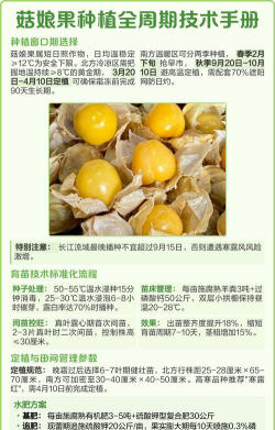 菇娘(又称洋菇娘、毛酸浆)是一种兼具食用与药用价值的草本水果,其种植技术涉及选地、育苗、田间管理等多个环节。以下是综合多个来源的种植要点: