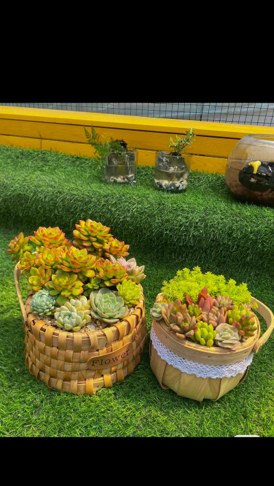 花篮:推荐使用空间较大的篮子(如竹编、塑料或金属材质),确保底部有排水孔或铺设打孔的塑料布、无纺布、干草等,以利透气排水。
