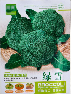 新绿雪西兰花是中晚熟品种,适合春或秋栽培,定植后80-85天收获。花球紧实,球色深绿色,呈扁圆形球形。花蕾细腻,植株少侧枝和少空茎,单球重约500克。花蕾整齐度高,而且栽培适应性较为广泛。春播初夏采收(适温为15-25℃)。高冷地及冷地的夏季和秋冬季栽培时,可收获优秀圆正的蕾球。具有耐低温,抗霜霉病,黑腐病等特点。