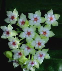 部分球兰品种的花朵呈淡粉色或浅红色,花心可能为红色或黄色。例如斑叶南方球兰、红花南方球兰等。