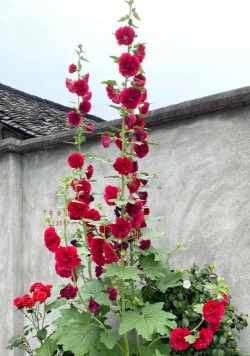蜀葵:植株高大,花朵硕大,红、粉、白色常见,易栽培。