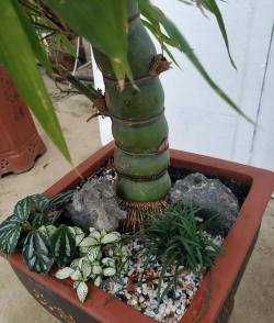 ①选留夏竹:在北方养佛肚竹如不得法,新竹节长而细,和毛竹相差无几,会失去其特有的风韵。佛肚竹一年有两次萌芽期,第一次在初夏,另一次在初秋。一般初夏生长的新竹,节短、肚大(如养护不得法,仍会变得细长),要注意保留;而初秋生长的新竹则干细节长,故秋竹除留作种竹外,一般应剪除。