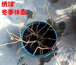 绣球花:休眠期叶片脱落,需减少浇水并停止施肥,耐寒品种可耐受-15℃低温。