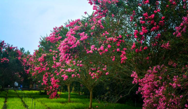 紫薇:花期长(夏季至秋季),花色丰富(粉、紫、白),适合行道树或庭院景观。