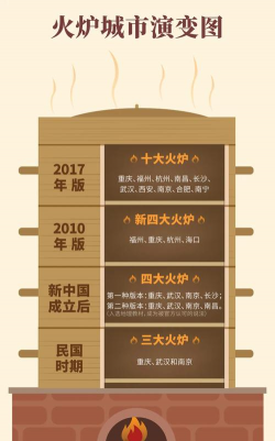 根据2019年的得到的数据结果显示,新的四大火炉城市为重庆、武汉、杭州和南昌,此后根据中国气候中心发布榜单,通过综合分析,列出了夏季炎热程度靠前的10个省会省事或直辖市,其中排在前列的有重庆、福州、杭州、南昌这四个城市,被不少网名称为“新四大火炉”。