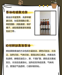 香油的选购和保存也需要注意。在选购香油时,应选择色泽鲜艳、透明度高、无杂质的产品。同时,应注意查看产品的生产日期和保质期,确保购买到新鲜合格的产品。在保存方面,香油应存放在阴凉、干燥的地方,避免阳光直射和潮湿,以保持其品质和口感。