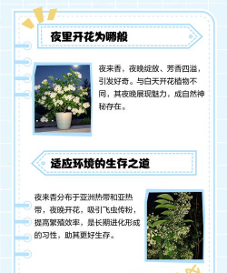 夜来香的老家在亚洲热带地区,那里白天气温高,飞虫很少出来活动,到了傍晚和夜间,气温降低,许多飞虫出来觅食,这时夜来香便散发出浓烈的香味,引诱飞虫前来传播花粉。经过世世代代的环境因素的影响,夜来香形成了总是在晚上发出香味的习性。如果长期把它放在室内,会引起头昏、咳嗽,甚至气喘、失眠。