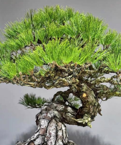 直干式、斜干式、悬崖式等,悬崖式需配深筒盆。造型需顺应树木自然形态,避免强行扎片,通过控水使针叶自然短缩至3厘米以内。