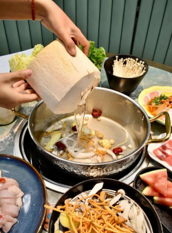 建议准备一些青菜、菌菇、豆腐、玉米、萝卜、马蹄等,像肉类和一些油腻的配菜,不适合在椰子鸡锅里面煮,会影响椰子鸡清香的口感。椰子鸡火锅如果是用食材煲的汤做汤底,可以先吃完鸡,再喝些汤,最后就可以加自己喜欢的其它食材开始涮火锅了。