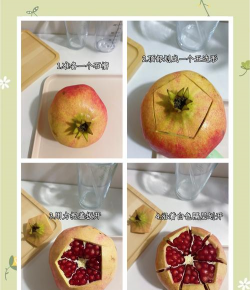 再用两手用力将石榴稍微向外掰松即可用手取出石榴籽(还可以用个小勺子敲打石榴皮),这个时候石榴籽就陆陆续续掉下来了,方法快速又干净。